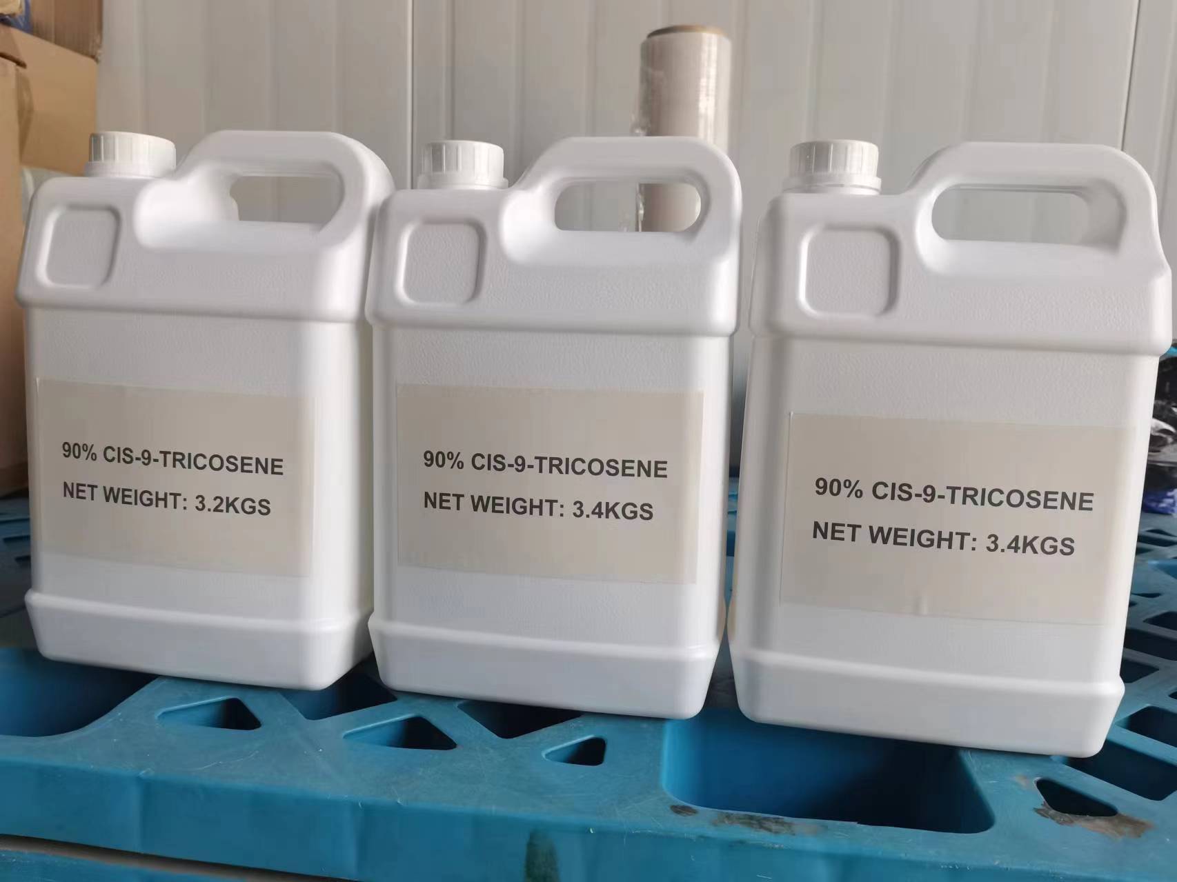 Z-9-Tricoseno é um feromônio sexual produzido por moscas domésticas fêmeas (Musca domestica) para atrair os machos. Em abelhas, é um dos feromônios de comunicação liberados durante a dança da abelha. Este produto é um feromônio de inseto sintetizado por nossa empresa usando um método de síntese química. Tem um bom efeito atrativo em baratas e moscas. Pode melhorar a eficiência inseticida dos inseticidas quando usado em combinação com inseticidas. Este produto é usado apenas como atrativo em inseticidas.